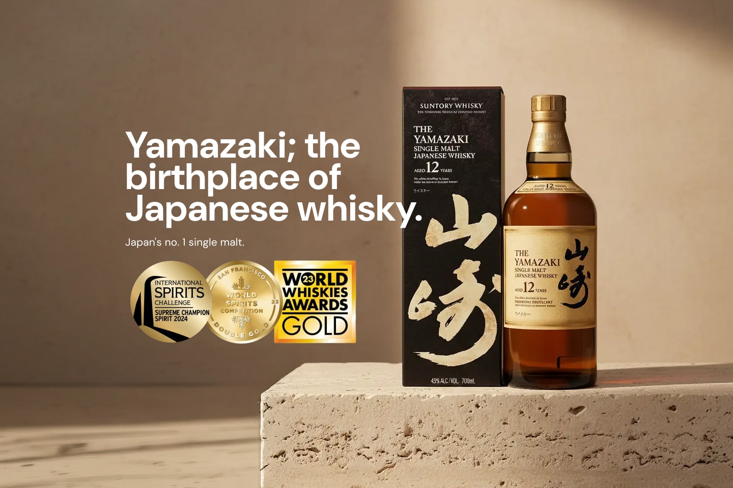 The Flagship Yamazaki 12, crafted at Japan's first and oldest malt distillery, aka the birthplace of Japanese Whisky, was founded in 1923 by Shinjiro Torii. It is said that Torii, inspired by traditional Scottish whisky, selected the land of Yamazaki at the foot of Mt. Tennozan for its high-quality water source and natural environment ideal for whisky making.